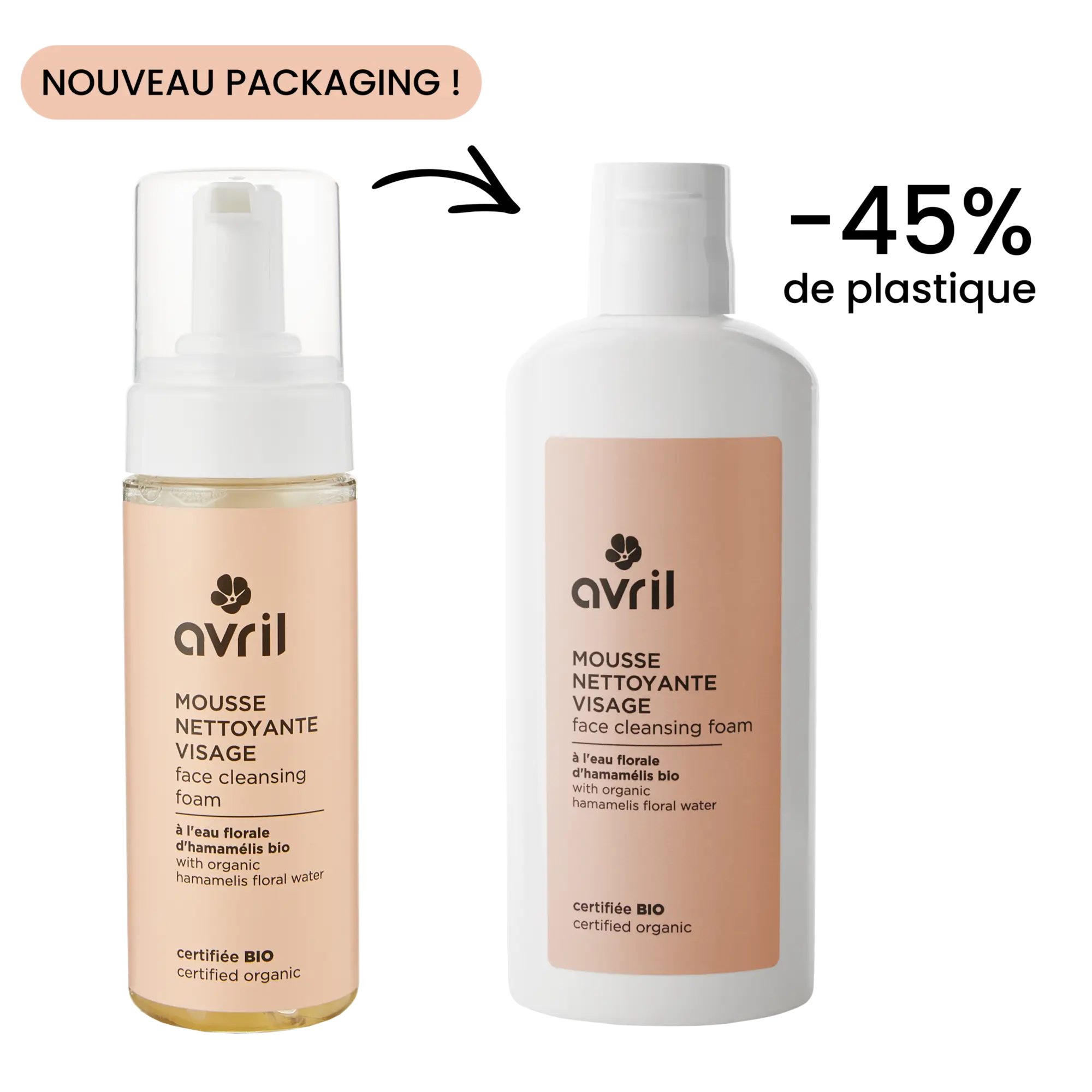 La mousse nettoyante visage certifiée bio Avril est le partenaire idéal pour un nettoyage quotidien. Formulée avec de l’eau de feuille d’hamamélis bio et de l’extrait de lilas bio, cette mousse visage est conçue pour nettoyer votre peau, qu’elle soit grasse, mixte, normale ou sèche. Cette mousse visage, fabriquée en France, présente une texture aérienne et légère pour bien commencer votre journée ou pour en éliminer toutes traces avant de vous coucher !