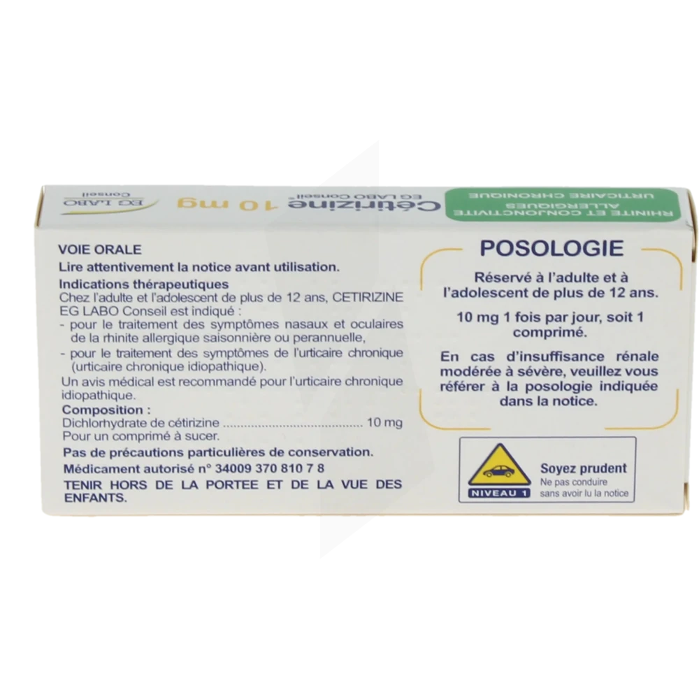 CETIRIZINE EG LABO CONSEIL 10 mg, comprimé à sucer