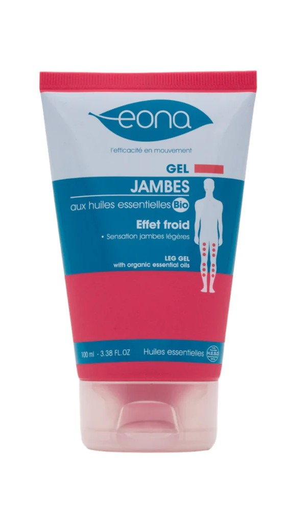 Le gel Eona jambes lourdes aux huiles essentielles BIO produit un effet froid instantané pour soulager les jambes lourdes et fatiguées.