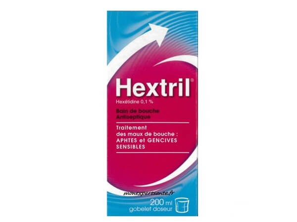 Adressez-vous à votre médecin ou pharmacien avant d’utiliser HEXTRIL 0,1 POUR CENT, bain de bouche, flacon.