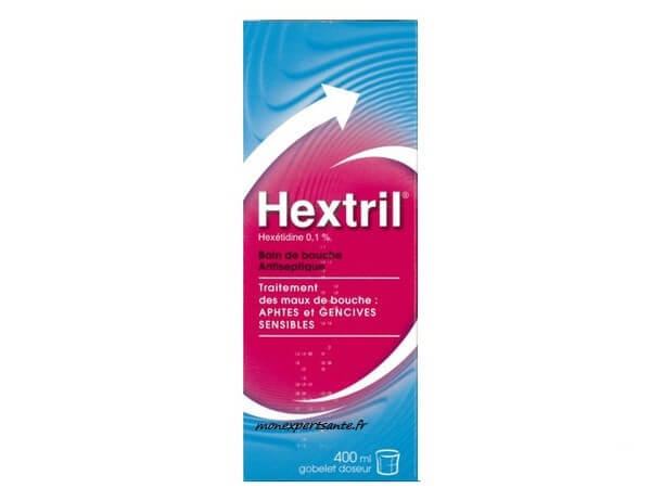 HEXTRIL 0,1 POUR CENT, bain de bouche, flacon s’emploie pur ou dilué, en bains de bouche : 1 dose 2 à 3 fois par jour.