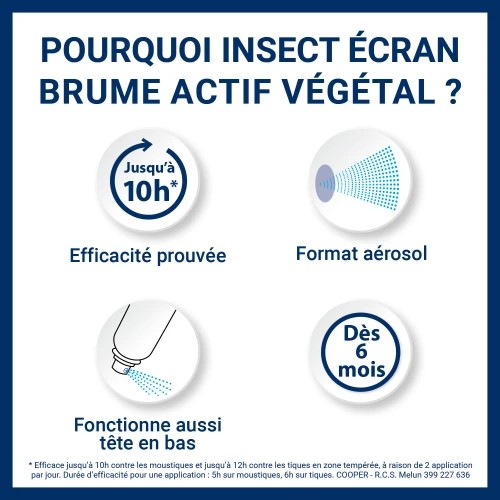 Il vous offre une protection efficace et immédiate jusqu’à 10h contre les moustiques (dont le moustique tigre) et jusqu’à 12h contre les tiques en zones tempérées.