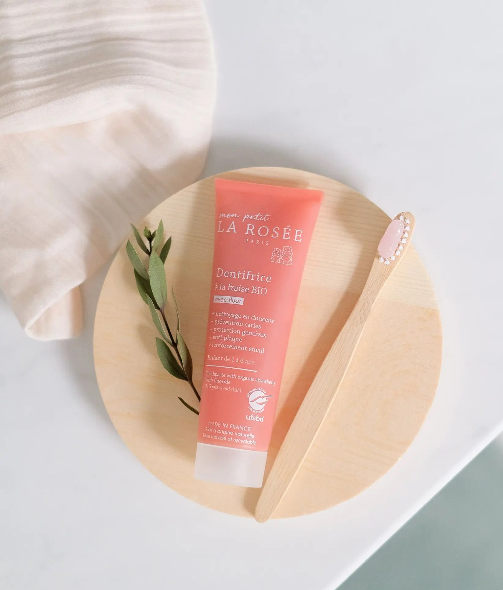 Un bon goût de fraise pour faciliter le brossage des dents chez nos petits.