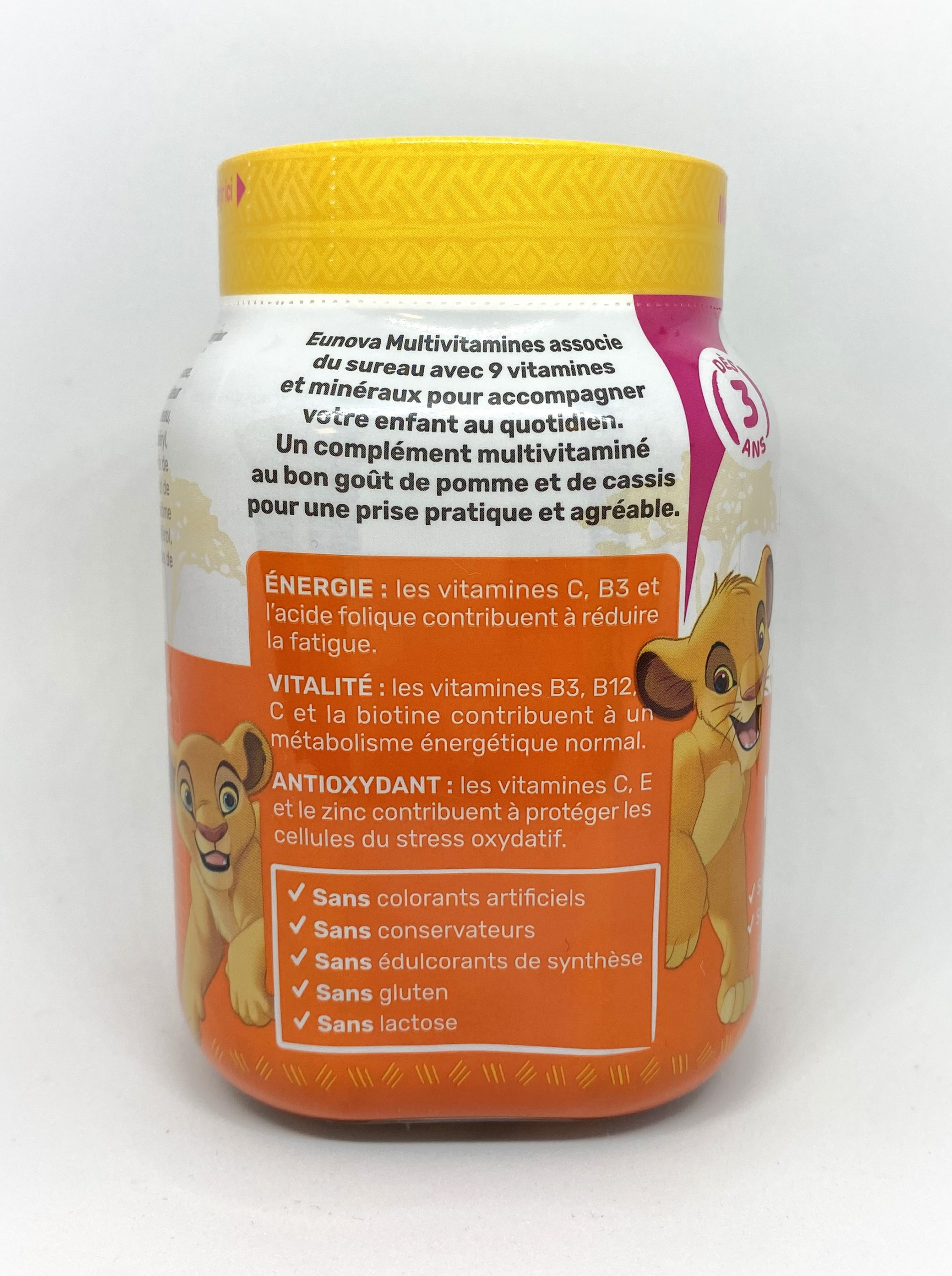 Eunova Multivitamines associe du sureau avec 9 vitamines et minéraux pour accompagner votre enfant au quotidien. Un complément multivitaminé au bon goût de pomme et de cassis pour une prise pratique et agréable.