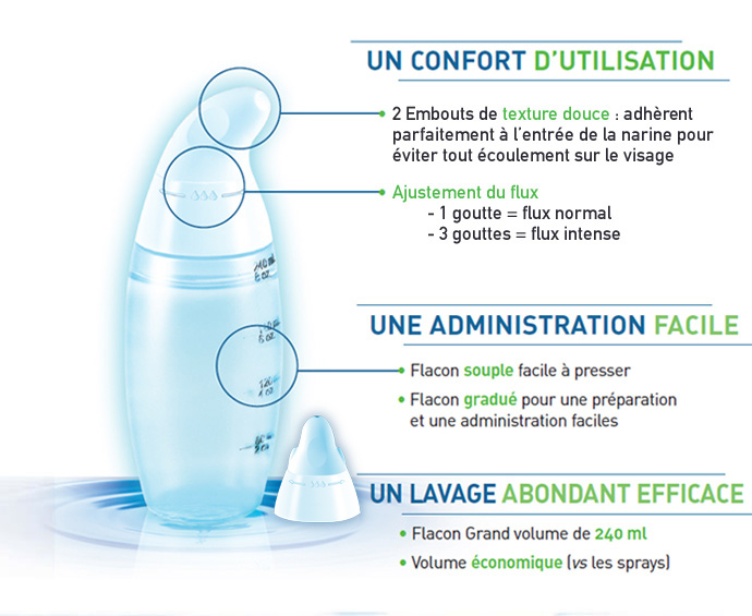 Il permet également de fluidifier le mucus et d’évacuer tout type de sécrétions, croûtes et agents infectieux.