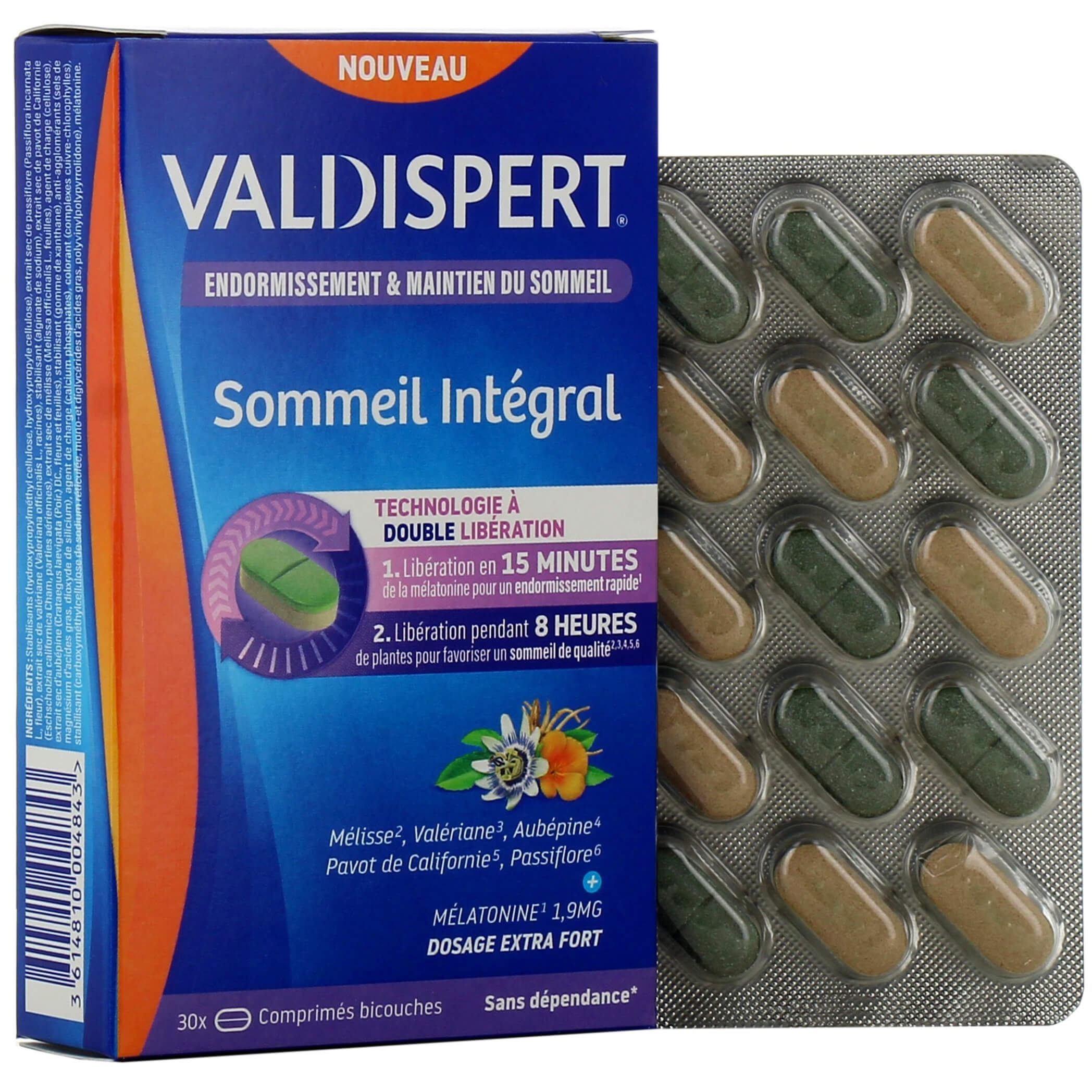 Valdispert Sommeil intégral est un complément alimentaire associant mélatonine et extrait de plantes pour favoriser l’endormissement et le maintien du sommeil. Il repose sur une technologie à double libération.