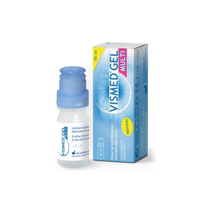 Vismed Gel Multi est un collyre qui traite les sensations de sécheresse oculaire modérées et sévères.