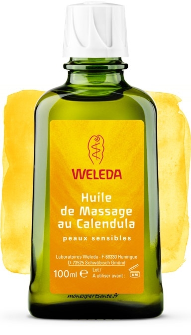 L’huile de massage au calendula du laboratoire Weleda est un soin corporel, idéal pour le massage et le soin des peaux très sensibles.